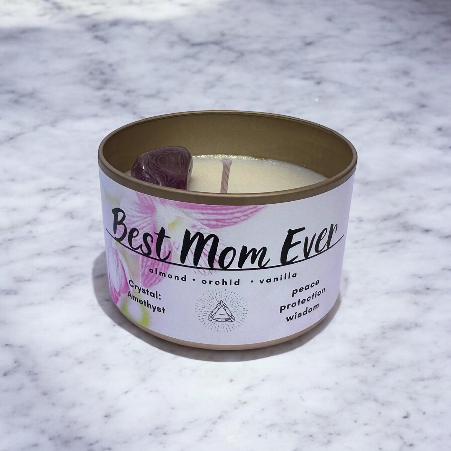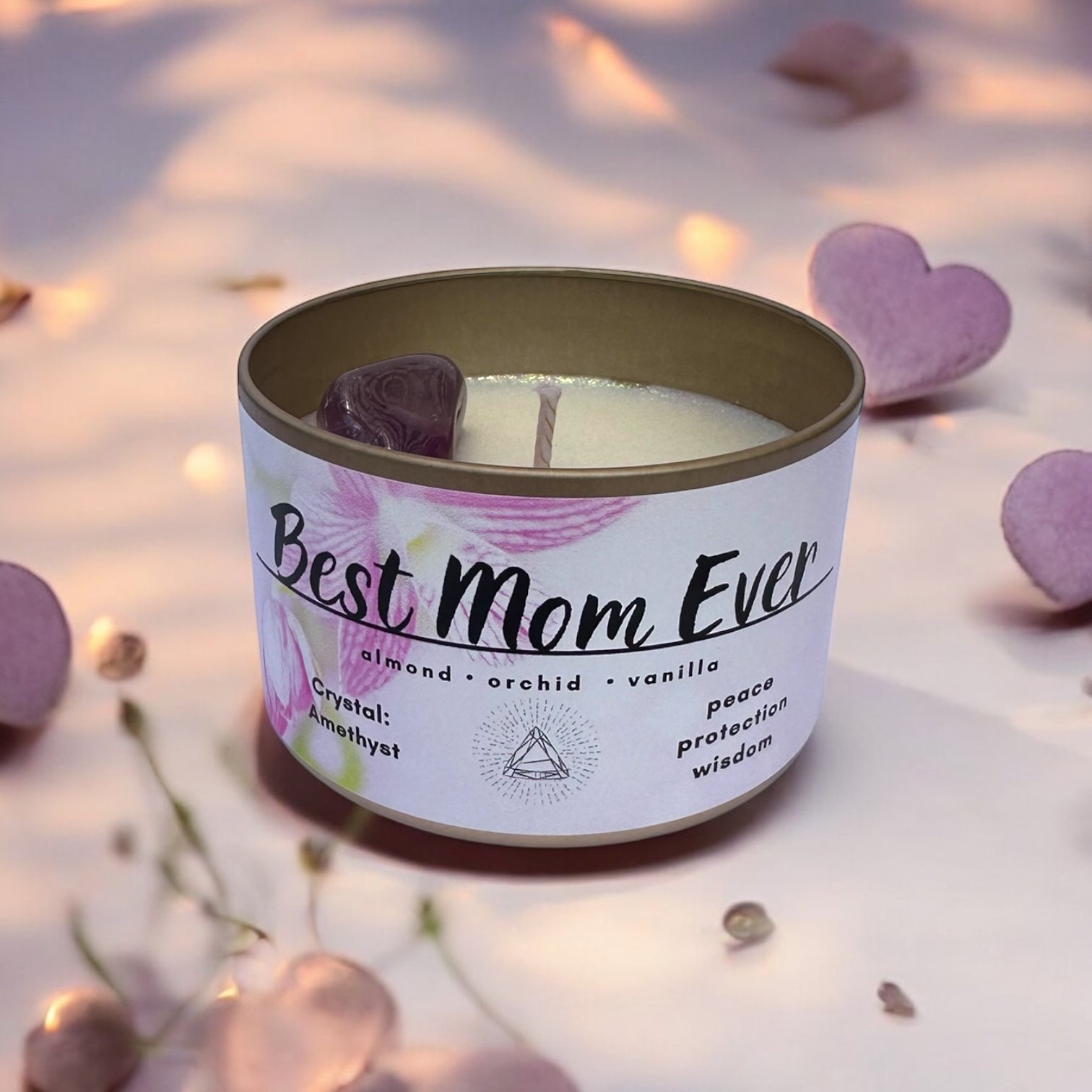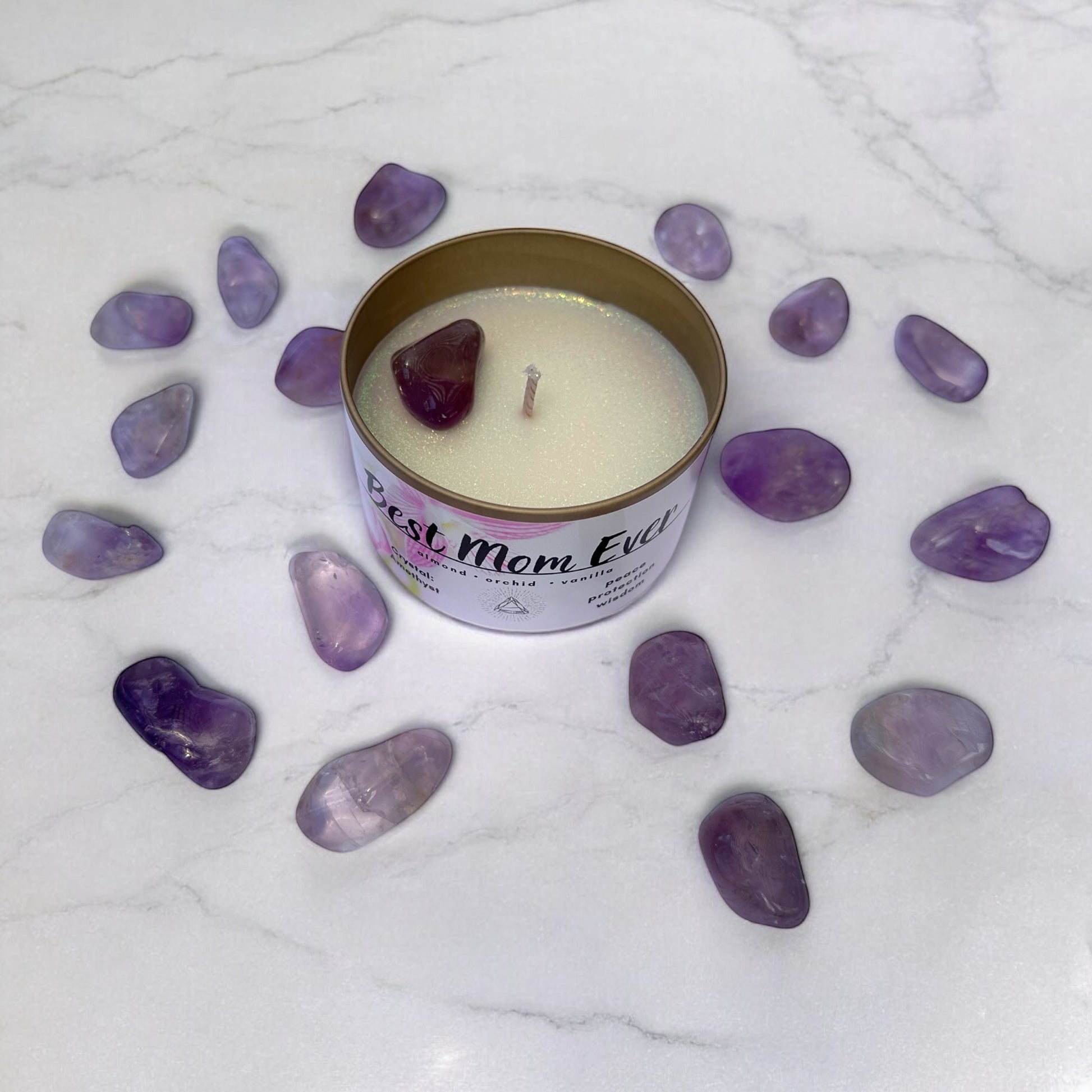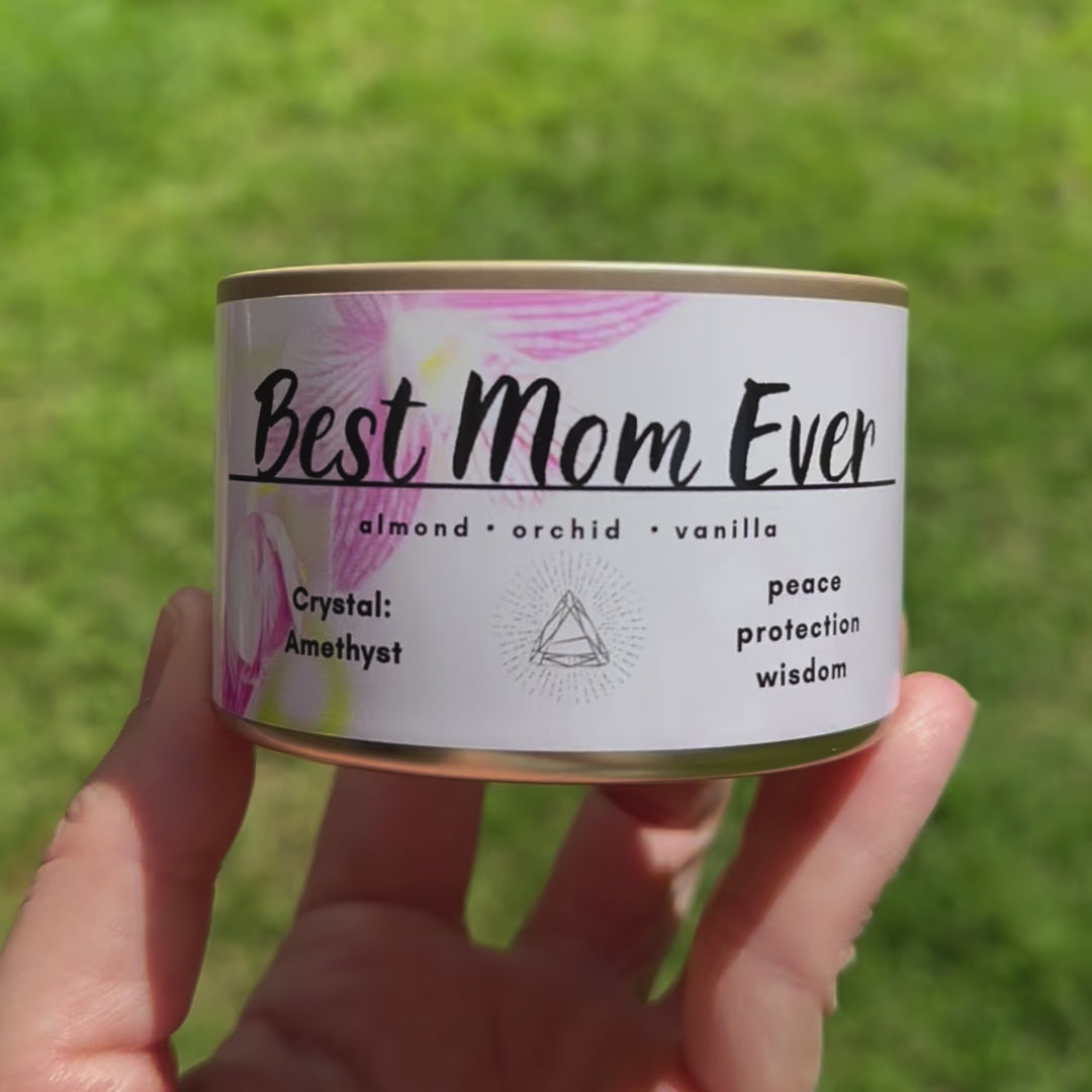 She’s your rock, your safe space, your biggest fan — and she deserves a gift that says it all. Our Best Mom Ever candle is a luxe, crystal-infused blend of love, light, and serenity, handcrafted to make her feel cherished every time she lights it. Thoughtful, beautiful, and full of good vibes — just like her.
