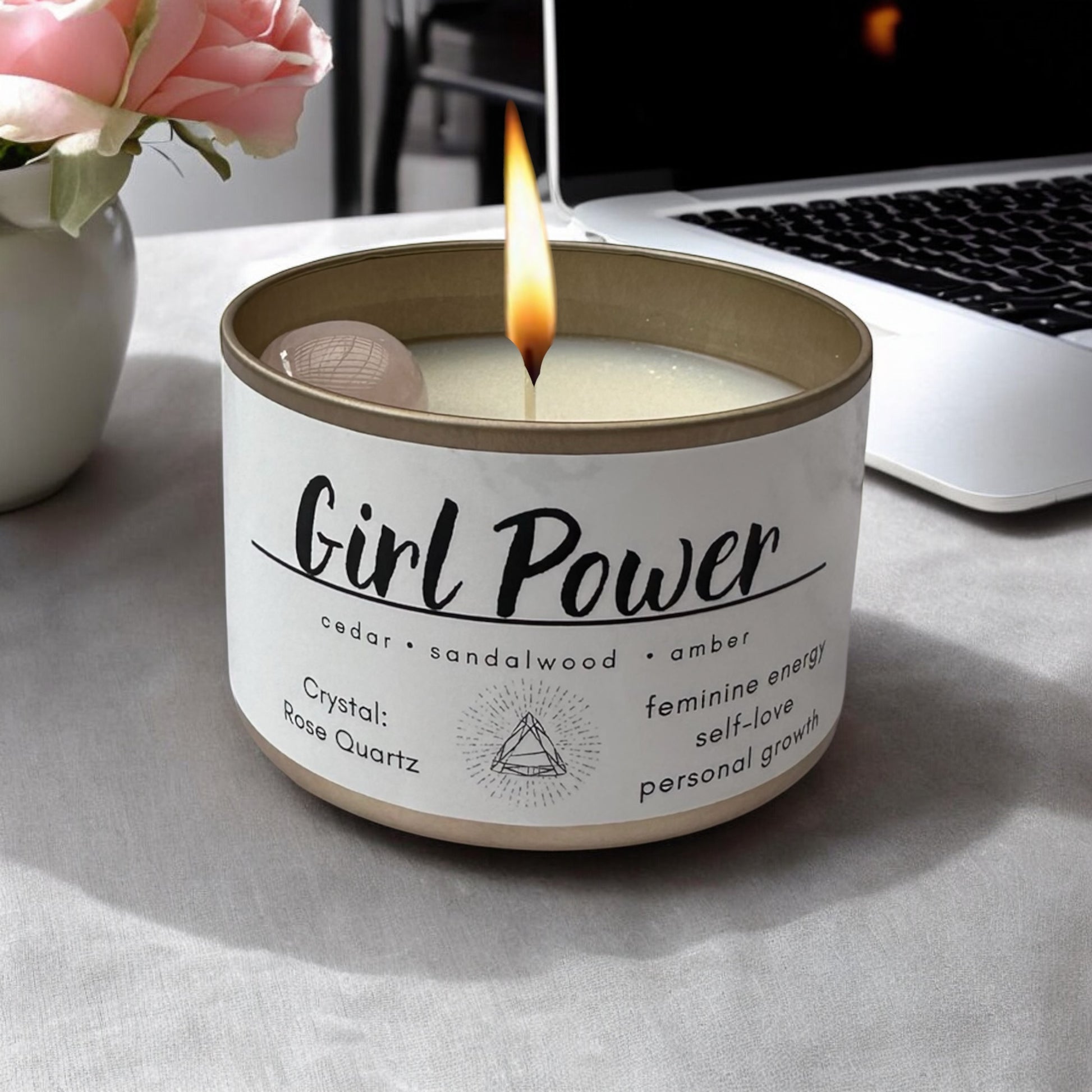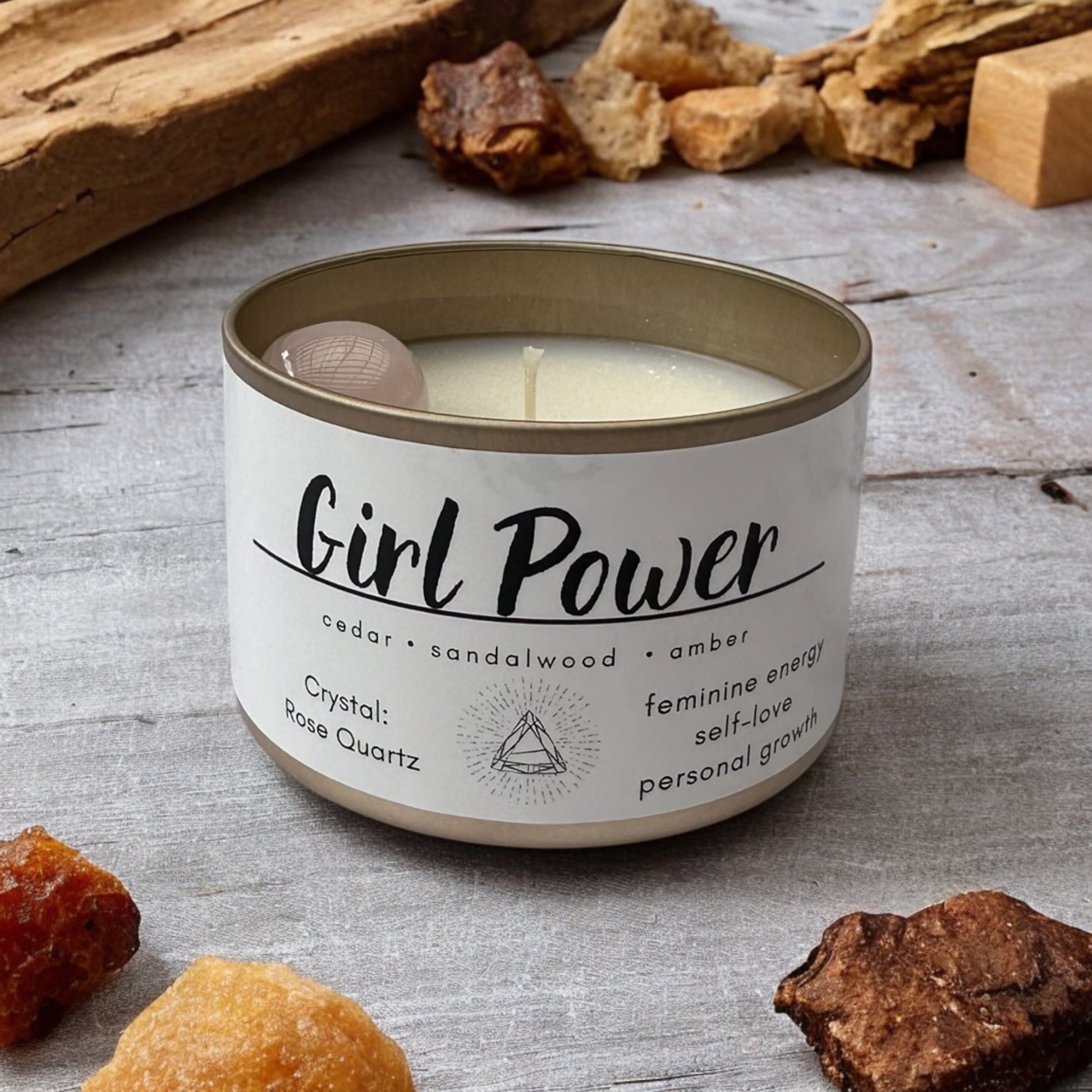 Girl Power is your glow-up ritual in a candle —made for quiet moments, bold dreams, and tuning into your highest self. Infused with empowering crystal energy, it’s here to help you pause, reflect, and manifest magic. Light it up, set your intentions, and watch your power unfold.