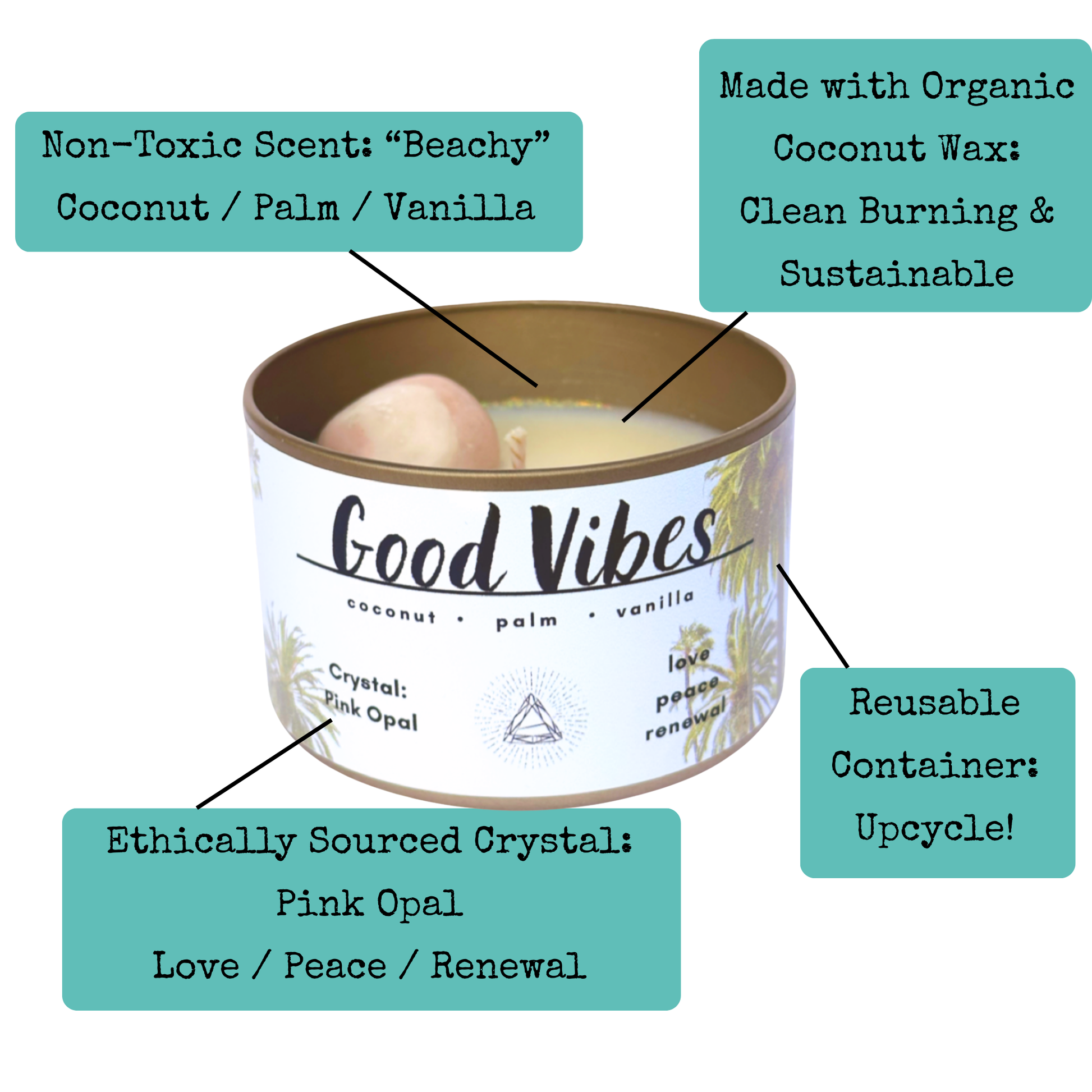 Let the universe know you're all about peace, love, and high vibrations. The Good Vibes candle is infused with pink opal and poured with intention, this candle radiates calming energy. Perfect for aligning your space with warmth, renewal, and seriously good vibes only.