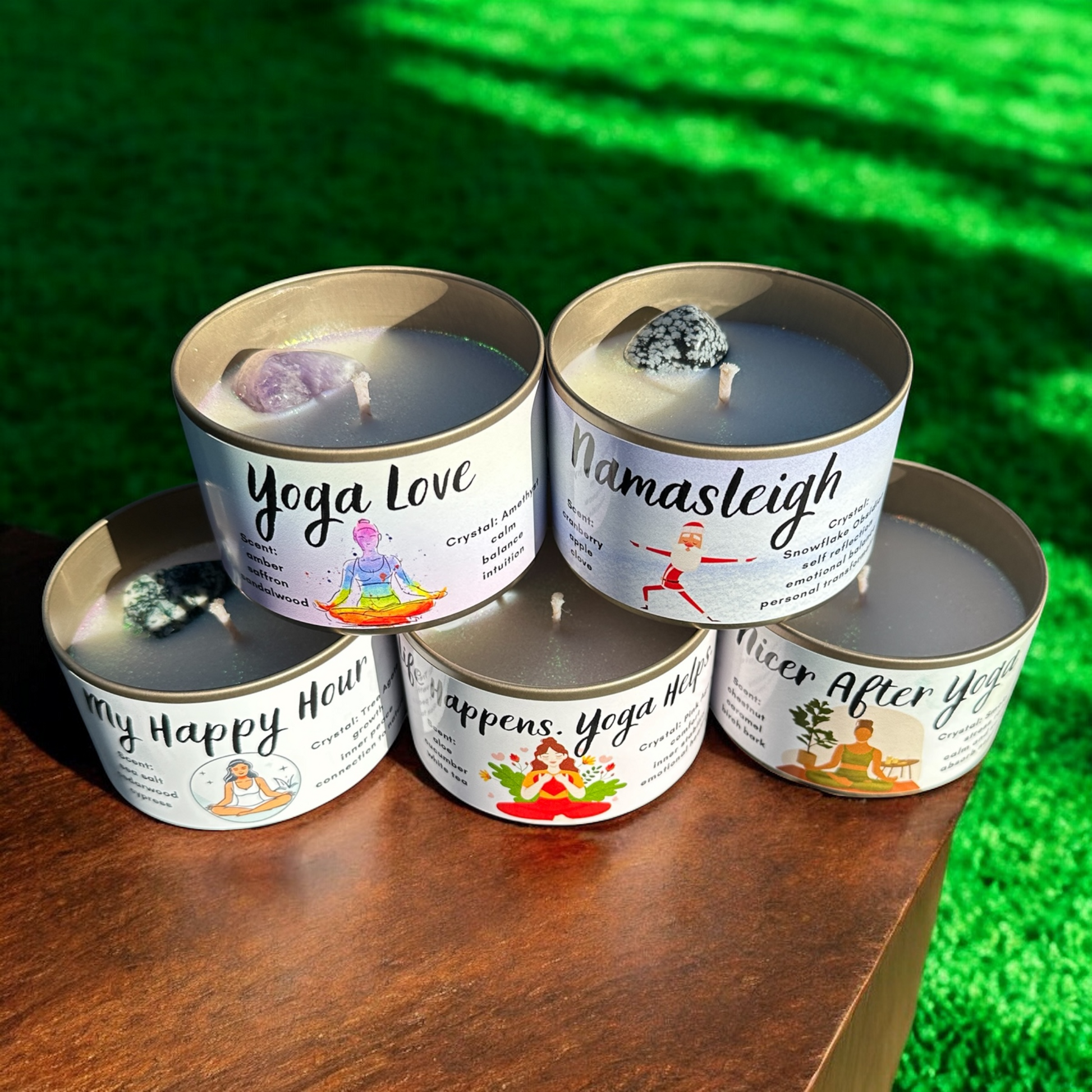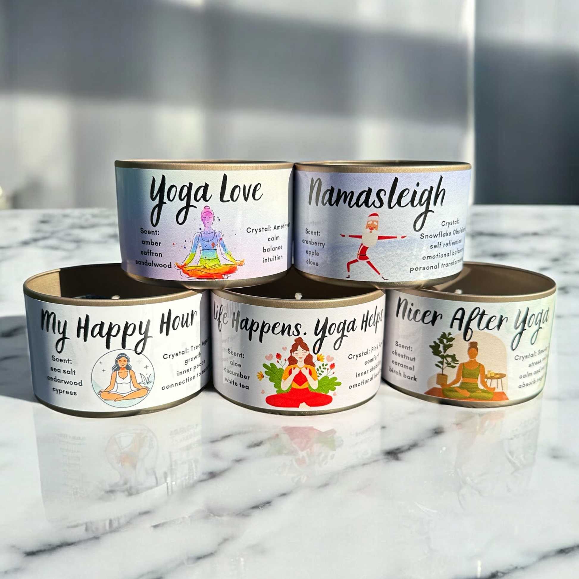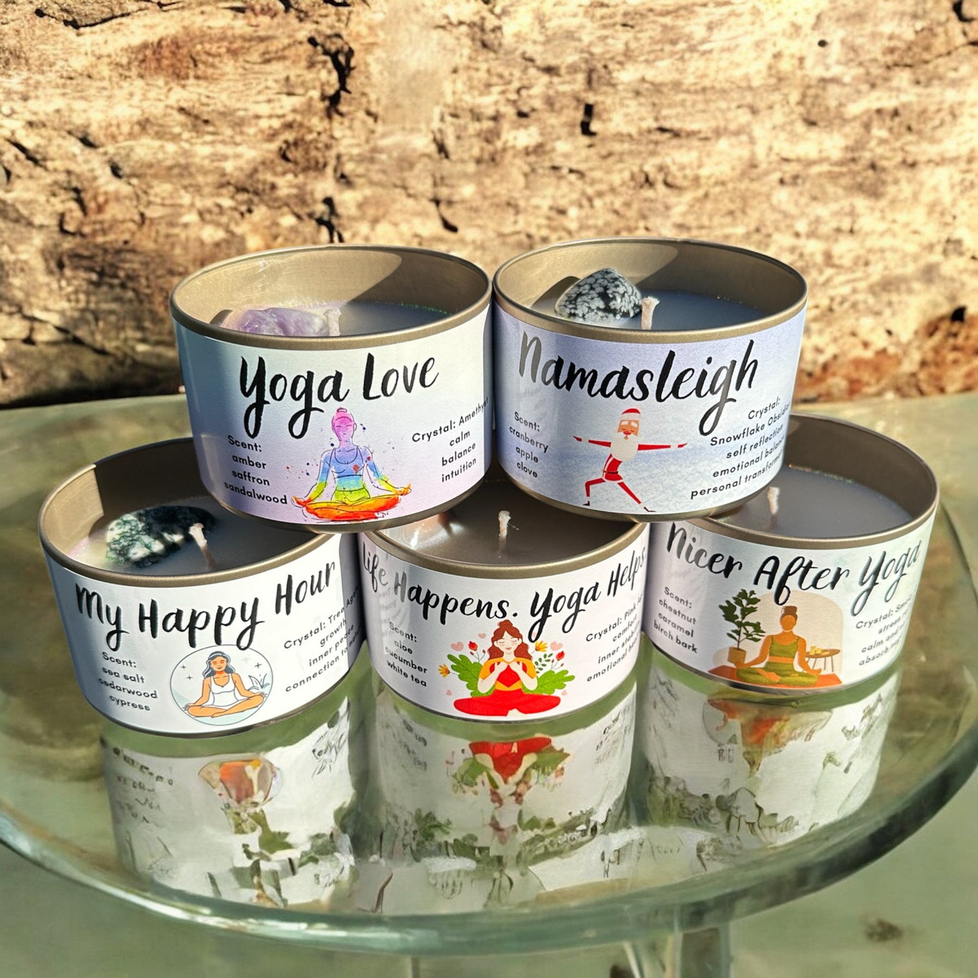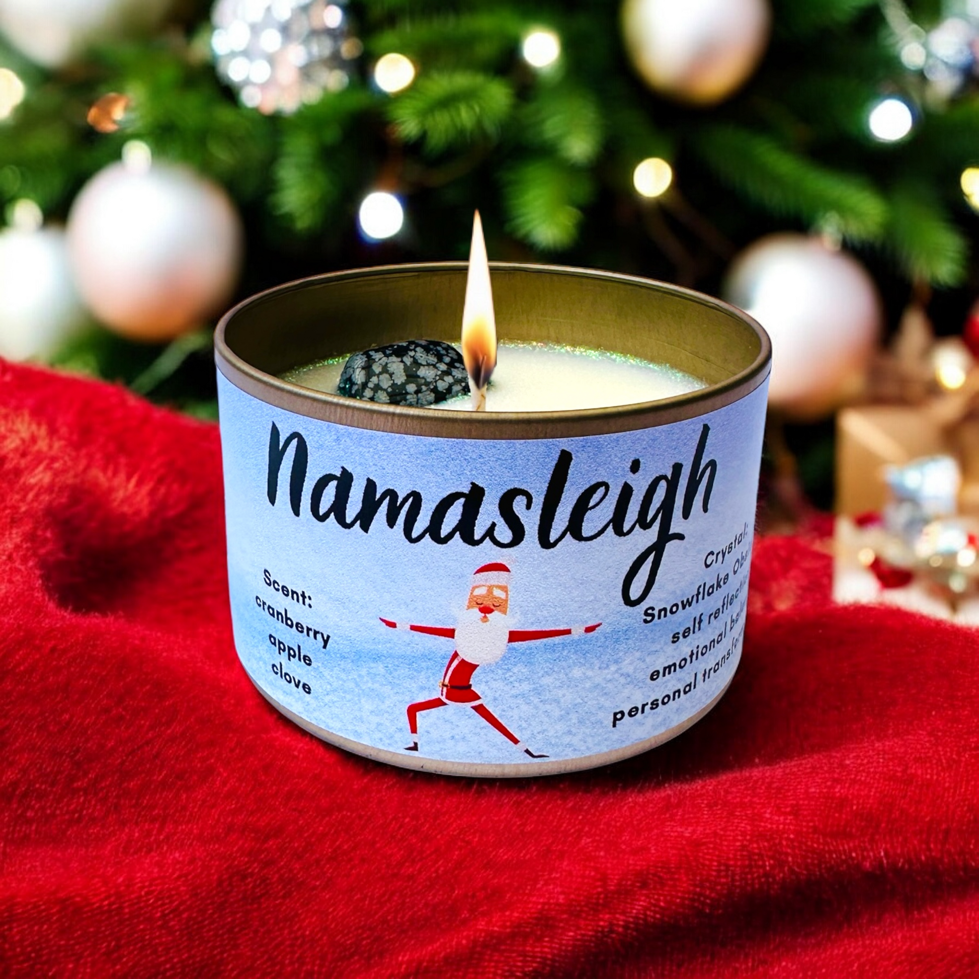 Bright notes of cranberry and apple mingle with warm clove for a festive yet grounding scent in our Namasleigh candle. Each candle is paired with snowflake obsidian, a crystal for balance, reflection, and transformation. A thoughtful gift for yourself or the yoga enthusiast who could use a little seasonal serenity.